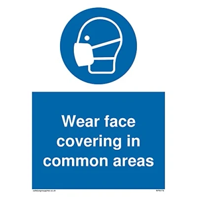 M016 : Wear a mask This sign is made from vinyl high tack A stickier sticker. Uses a stronger adhesive to make it more suitable for plastic surfaces like Wheelie Bins or where the sticker might get rubbed. A5 portrait Sign Text: Wear face covering in common areas