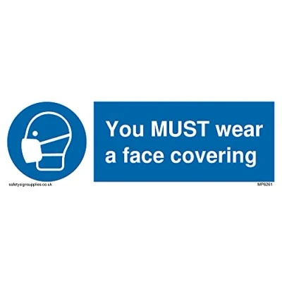 No Symbol This sign is made from vinyl / sticker ‘Air Release†vinyl makes it easy to stick to flat, clean surfaces without bubbles. Not for rough, plastic or dusty surfaces. 15 landscape Sign Text: You MUST wear a face covering