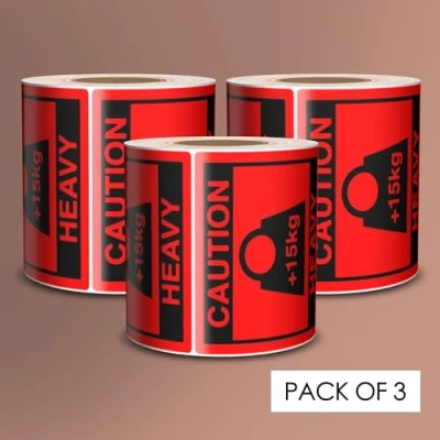 Strong Self Adhesive: iSOUL Cuation 500 Sticker with Each Rolls Labels comes with Strong Hot Melt Glue to stick any surface liek Glass, Cardboard, marble, Plastic bags and more. Size: Pre Printed Caution Heavy 15+KG Strong Self Adhesive 500 Labels Per Rolls size is best to easy readable and appear to eye with the size of 80x80mm Squre size. Material: 15kg Warning Sign Red Semi-Glossy Labels Sticker Roll made with Paper Material with Permanent strong Long Lasting and Easy Peeling Adhesive from Roll to stick with any surface. Package Includes: As per Size Quantity sellection from available Option you can select 1,2,3,5,10 Rolls from Our store Product Page Options. 500 Caution Heavy Package stickers Labels Rolls, This Dark Red and Black Strong Self Seal Sticker Labels comes with Dark Red background are highly visible giving a clear warning to anyone that comes into contact with the parcel or package.