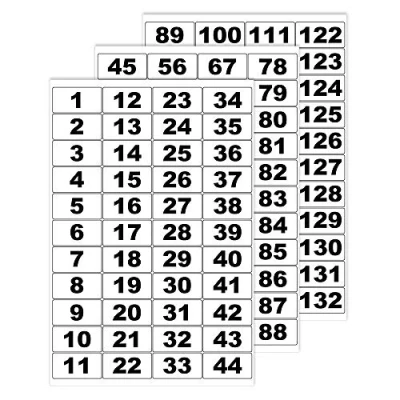 Pack contains: Transparent self-adhesive number stickers (1–132) of size 25 x 50 mm. sequence labels rectangle white labels with black numbers. you will receive white background with black bold font only (without border). in product image, black border is shown for illustration purposes only. Material: our consecutive number stickers are printed on high-quality transparent waterproof material with a smooth, perfect finish. Usage: our number stickers can be used on storage boxes, desks, files, batteries, memory cards, plastic bobbins, dmc threads, and packaging for easy identification and organisation. Easy peel: our Stickers numbers are easy to peel off and apply to any flat, dry surface. Origin: Manufactured and dispatched from the UK.