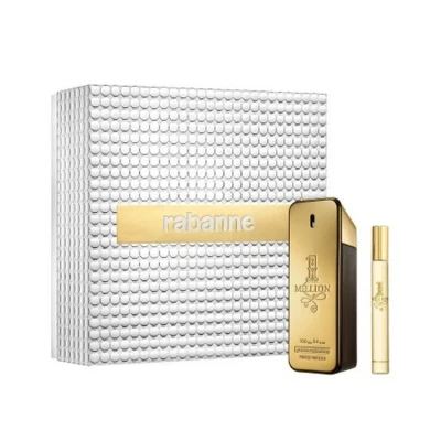 #html-body [data-pb-style=RGKI6FG]{justify-content:flex-start;display:flex;flex-direction:column;background-position:left top;background-size:cover;background-repeat:no-repeat;background-attachment:scroll}Paco Rabanne 1 Million Eau de Toilette is a bold and captivating fragrance designed for men who dare to stand out. With its powerful blend of fresh leather and spice, this iconic scent strikes the perfect balance between youthful energy and refined masculinity. It's a fragrance that commands attention and leaves a lasting impression wherever you go. The composition opens with a vibrant burst of mandarin and peppermint, spiced with a hint of pink cinnamon for an unexpected kick. As the scent evolves, warm notes of leather, amber, and patchouli emerge, creating a rich, sensual base that grounds the fragrance with depth and sophistication. The result is a daring and unforgettable olfactory experience that breaks conventions. Presented in the iconic gold bar bottle, this gift set includes the 100ml Eau de Toilette spray and a 10ml travel spray—perfect for staying fresh and confident on the go. Paco Rabanne 1 Million is more than a fragrance; it's a bold statement of style and ambition.