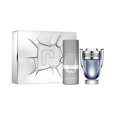 Inhale the scent of victory with 'Invictus' by Paco Rabanne. This sensually fresh scent sets a modern vision of masculinity. 'Invictus' is an unexpected clash of worlds, powers, sensations, and values a thrill of pure freshness top note facing the sensuality of a guaiac wood base note. Set Includes Eau de Toilette 100ml Spray and 150ml Deodorant Spray