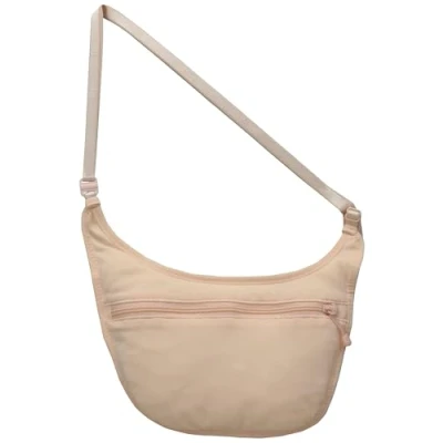 Discreet, hidden, and soft-to-the-touch secret body pouch made from lingerie fabric; fits passport, credit cards, and cash Soft, adjustable elastic neck strap with clasp Breathable material lies comfortably on the body underneath clothing; machine washable Measures 10.5 x 5 inches weighs 1 ounce 5"x10.5"x5"