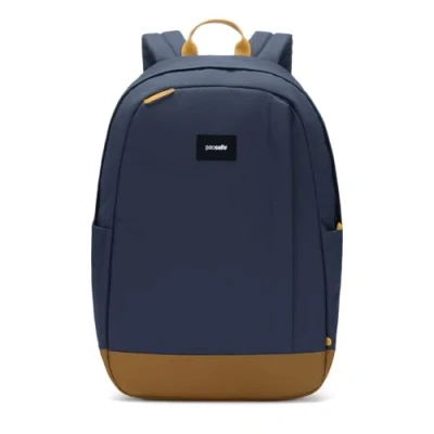 ANTI-THEFT - With the wire reinforced anchor strap, backpack can be secured to table or chair to keep belongings secure when unattended. Zip pullers attachable to hooks to deter pickpockets. Cut Proof Material (lightweight steel mesh) to prevent theft. ORGANIZATION - 2x Lockable Zippered Compartments. Front pocket with Key Clip for quick access. Main compartment with 15" Padded Laptop Sleeve, 1x RFID Blocking Pocket, Pen Loop, 2x Side Water Bottle Pocket, Zippered Hidden Back Storage Pocket, Luggage Slip TRAVEL READY - Features Luggage Slip that slides over luggage handles to keep bag balanced on a wheeled bag when in transit. RFID blocking pocket material meets official US FIPS 201 quality standard to protect credits cards/IDs against unauthorized scans. MADE FROM RECYCLED POLYESTER - Backpack is made of eco-friendly Polyester made from recycled waste, such as plastic bottles. Material has the same quality as new Polyester with a smaller environmental footprint. DIMENSIONS, WEIGHT & WARRANTY - 18.1"H x 12.2"W x 5.5"D, 1.6 lbs. Made of soft, durable, water resistant and easy to clean recycled Polyester to ensure long-lasting usage everyday & during weekends. Comes with a 5-year Pacsafe warranty.