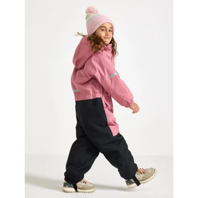 Lindex Padded, waterproof and windproof snowsuit with taped seams, zip and velcro closure and a practical removable hood for adaptable comfort. The overall has a 10 000 mm water column.