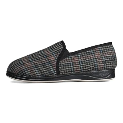 𝐏𝐑𝐄𝐌𝐈𝐔𝐌 𝐌𝐀𝐓𝐄𝐑𝐈𝐀𝐋: The closed-back design features high-quality material with soft textile inner fabric and pure synthetic textile outer material in the upper; it is plush, lightweight, and durable. 𝐒𝐔𝐏𝐄𝐑 𝐒𝐎𝐅𝐓 𝐅𝐎𝐀𝐌 𝐅𝐎𝐎𝐓𝐁𝐄𝐃: The plush memory foam footbeds are super soft and comfortable; just like walking on a cloud; they are perfect for day-long wear. 𝐂𝐎𝐌𝐅𝐎𝐑𝐓𝐀𝐁𝐋𝐄 𝐀𝐍𝐃 𝐖𝐈𝐃𝐄 𝐅𝐈𝐓𝐓𝐈𝐍𝐆: These wide 'G' fitting slippers are very soft and flexible; with a closed back, they offer a perfect and comfortable fit for your feet. 𝐃𝐔𝐑𝐀𝐁𝐋𝐄 𝐍𝐎𝐍-𝐒𝐋𝐈𝐏 𝐑𝐔𝐁𝐁𝐄𝐑 𝐎𝐔𝐓𝐒𝐎𝐋𝐄: Suitable for day-long indoor wear, the sole is hard-wearing and durable; with great traction they are safe and nonslip, so you can walk confidently in comfort. 𝐈𝐍𝐃𝐎𝐎𝐑 𝐀𝐍𝐃 𝐎𝐔𝐓𝐃𝐎𝐎𝐑: Slip on these super soft men's lightweight slippers and use them around the house or to take out the rubbish; the high-quality textile upper material wipes clean and is hand washable.