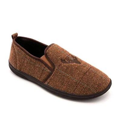 Padders Huntsman Low Top Wide Fitting Memory Foam Slippers (7, Brown, numeric_7)