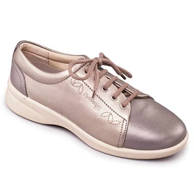 Smooth leather uppers Textile/leather lining Man-made soles Lace up fastening With removable insoles for a roomier fit