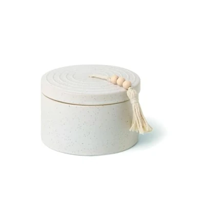 A COZY, HOLIDAY-INSPIRED FRAGRANCE Crisp notes of frosted fir needles, white eucalyptus, crushed pine cone, and warm sandalwood give this candle its woodsy aroma; we work with perfumers to source nature's finest ingredients, creating high-quality, candles that tell a special fragrance story to fit your mood WHITE SPECKLED Textured ceramic vessel features a fitted lid with a wood beaded tassel LONG-LASTING CANDLE: This jar candle is filled with a deeply fragrant soy wax blend and has 3 clean-burning cotton wicks DESIGNED WITH REPURPOSING IN MIND With every design, we ensure that each vessel can be repurposed when the wax runs out; set on a vanity and repurpose as a jewelry catchall MADE BY PADDYWAX, A Nashville, USA-based company known for creating thoughtfully designed candles; each Paddywax candle is made and sourced intentionally and features a mix of materials, shapes, and unique fragrances to set the scene for beautiful memories made by candlelight