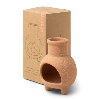 CHIMINEA CONE HOLDER GIFT SET Includes a ceramic incense holder and 20 incense cones; fill your home with a flameless fragrance DIMENSIONS 7.29cm in diameter x 10.49cm high; incense cones have a 6 - 7 minute burn time PALO ALTO A luxurious scent with notes of bergamot, black leather, and dark oak; Paddywax fragrance blends are crafted with alluring fragrance oils and are designed to be both complex and balanced ADD A WESTERN VIBE TO YOUR SPACE Pair this accessory with Paddywax cowboy hat incense burners and cowboy boot match stick holders for a cohesive ceramic theme MADE BY PADDYWAX, A Nashville-based company known for creating thoughtfully designed candles; each Paddywax candle is made and sourced intentionally and features a mix of materials, shapes, and unique fragrances to set the scene for beautiful memories made by candlelight