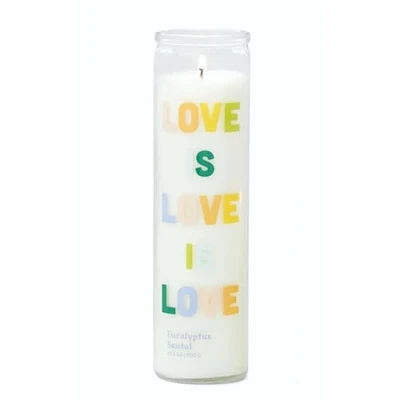 GROOVY SCENTED CANDLE Every high-quality candle in our Spark range is sure to spark positive intentions and leave a lasting smile LOVE IS LOVE IS LOVE Is written in rainbow lettering on clear glass filled with bright white fragrant candle wax EUCALYPTUS SANTAL FRAGRANCE Features notes of sweet lime, violet, and sandalwood FUN TAKE ON A PRAYER CANDLE Glass vessel is inspired by classic prayer candles, but the designs feature words of encouragement ARTFULLY CRAFTED: Paddywax is an artisan company specializing in candles and diffusers made with quality materials, inspiring colour palettes, and alluring scents to set your home’s tone