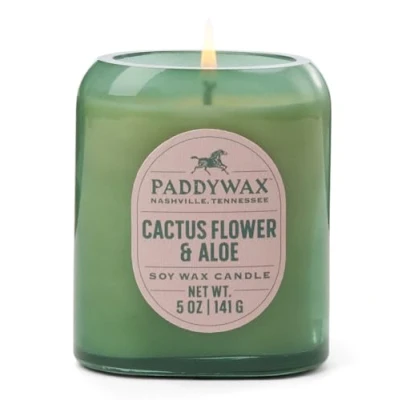 VINTAGE STYLE GLASS: Inspired by vintage tequila bottles, our Vista soy wax candles fill your home with lush fragrances SMALL CANDLES: 142 gram candles come in a reusable frosty orange glass jar that emits a soft glow when burning LONG-LASTING CLEAN BURN TIME: Made with Paddywax's proprietary soy wax blend and filled with our fresh cactus flower and aloe scent; features a clean-burning cotton wick UPCYCLED BEAUTY: Our high-quality scented candle is designed with upcycling in mind—after you burn each candle, freeze the jar overnight to remove the wax and wick and create a charming storage container ARTFULLY CRAFTED CANDLES: Paddywax is an artisan company specializing in candles and diffusers that that are made with quality materials, inspiring color palettes, and intriguing fragrances to set the tone in your home