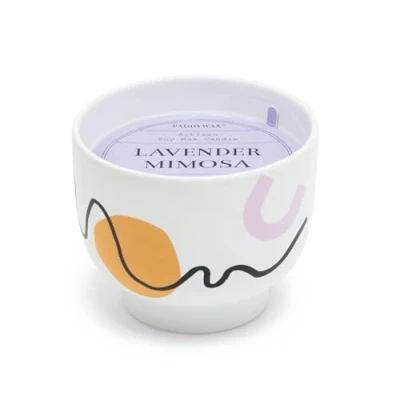 Paddywax Scented Candles Wabi Sabi Collection Fragrant Candle in Reusable Colorful Ceramic Bowl, 340g, Lavender Mimosa