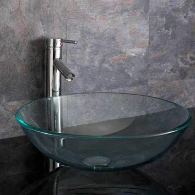 Padova 420mm Clear Glass Large Round Countertop Basin Clickbasin