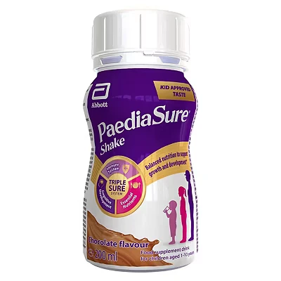 Why Buy Me? PaediaSure Shake Chocolate is a tasty and nutritious drink specially developed for children aged 1 to 10. It supports healthy growth, immunity, and cognitive development with its rich blend of 26 vitamins and minerals, protein, and omega 3 and 6 fatty acids. Ideal for fussy eaters, active kids, or those with a small appetite. Thanks to its delicious chocolate flavour, children enjoy drinking it. The ready-to-drink format makes it a convenient option for snack times or on the go. Brand: Paediasure Product Type: Baby Food Product Sub-type: Drinks & Smoothies Age: 1-10 years Details: • C Contains 26 vitamins and minerals, protein, and omega 3 & 6 fatty acids. • Supports growth, immune function, and cognitive development. • Ready-to-drink format can be consumed chilled or at room temperature. • Recommended intake: 1 bottle per day for ages 1–3, 2 bottles per day for ages 4–10. • Chocolate flavoured. • Gluten-free and suitable for vegetarians. • Compatible with halal and kosher diets. • No preparation needed; shake well before use, do not add water. • 200 ml bottle. • Allergy Information: Contains milk and soy.
