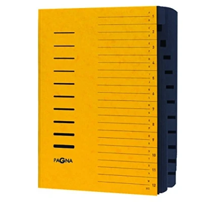 Pagna 24122 05 File 12 Sections Pressboard Elastic Straps Black Index 1 12/A Z on Cover Yellow