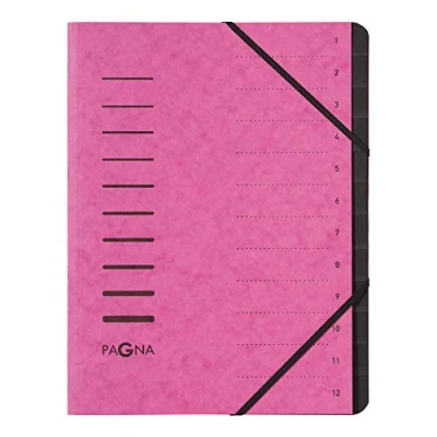 Pagna 4005934 A4 Elastic Straps Pro Pressboard 12 Part Divider File Dark Pink