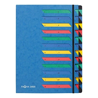 Portfolio folder consisting of sturdy pressboard and stretchy spine promises plenty of space for loose documents Organiser folder with coloured index A-Z; additional elastic closure for better grip and protection Writeable insert label for individual labelling or printing of the organiser folder Areas of application: the project folder is suitable for sorting and storing loose documents in the office, home office, school, university or even on the go Box contents: Pagna 24151-02 desk organiser 245 x 320 x 25 mm, 1 piece