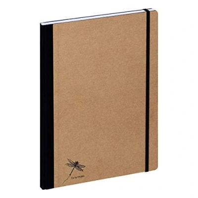 A4 Kraft Notebook Kraft paper made from 100% fresh fibre is biodegradable, reusable and recyclable High-quality, subtle embossing of a dragonfly in deliberately natural design The large A4 size offers plenty of space for sketches, ideas and notes and the envelope can be customised with different pens. Thanks to the practical elastic closure, also hold notes and pictures securely.