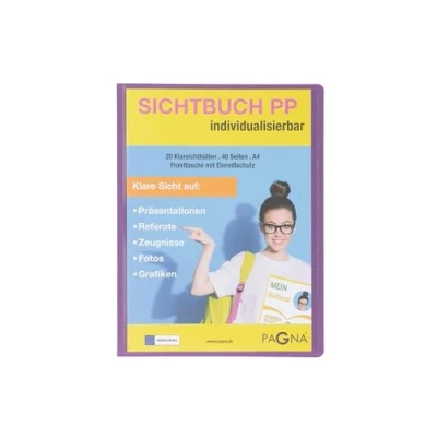 Made of polypropylene (PP), purple With full-page front pocket and 20 shrink-wrapped transparent pockets Format: for DIN A4 Areas of application: presentations, reports, elaborations, CVs, academic preparations, lectures, certificates, photos, graphics, reports Box contents: 1 x 21013-12 display book A4 PP school with front pocket, purple