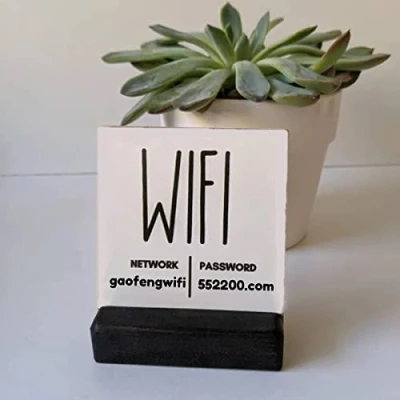 PREMIUM MATERIAL: Our sign is made of 4×4 inch, 3mm (0.12 inch) thick White PVC board; This sign comes with a stand, a stunning PVC wifi sign. CUSTOMIZE: Click "Customize Now", customize your unique wifi title, add your network name and password, and leave the rest to us. CONVENIENT AND FAST: The Wi-Fi logo allows your customers to quickly check your network and connect successfully. No more tediously asking for the name of the wifi and entering passwords too slowly. APPLICABLE OCCASIONS: Bookstore, clothes store, shoe store, souvenir, jewelry store, cosmetics store, snack bar, popcorn shop, hairdresser, salon, business logo. AFTER-SALES SERVICE: If you have any questions or need to customize the content, please contact us in time, I will customize the perfect product according to your content.