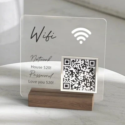 Pahdecor Wifi QR Code with Base Sign Scan for Custom 5"x5" Guests Sign, Editable Wi fi Template