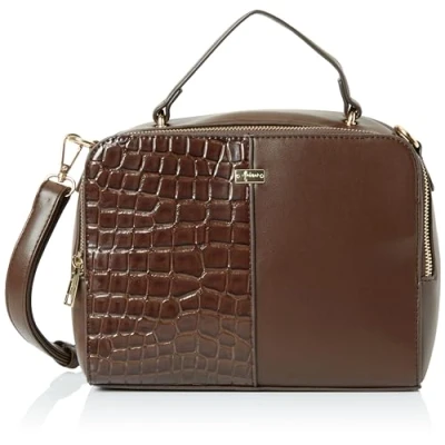 Elegant handbag Half smooth, half crocodile look Made from high-quality faux leather Zip closure Textile inner lining with side pocket