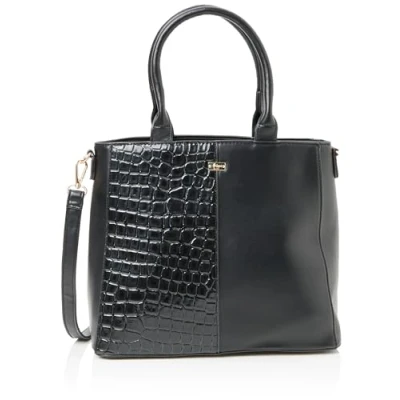 Elegant tote bag Half smooth, half crocodile look Made from high-quality faux leather Zip closure Textile inner lining with side pocket