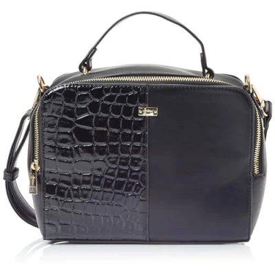 Feminine handbag Made of soft material Spacious inner compartment Gold accents Adjustable and removable carrying strap
