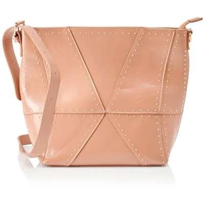 Spacious shoulder bag Made of high quality faux leather Decorated with gold studs Adjustable shoulder strap Textile inner lining