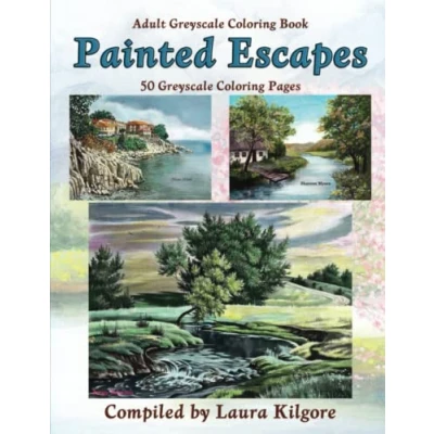 painted Escapes: Adult Greyscale Coloring Book with landscapes being the theme for this book. There are 50 beautiful images in watercolor, oil paintings, and so much more.