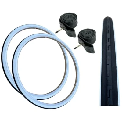 Pack Contains: 2x TYRES & 2x PRESTA INNER TUBES Suitable replacement for vintage/traditional bikes fitted with this tyre size: 27" x 1-1/4" - (NOTE: THIS TYRE IS NOT SUITABLE FOR MODERN MOUNTAIN BIKES) Baldy's tyres are excellent value for money, manufactured from quality materials, tried and tested to ensure long lasting reliability and durability. The modern, distinctive road tread design provides excellent all weather performance, a comfortable ride, low rolling resistance & vibration. Designed for all riders without compromise, great long lasting performance that works in all conditions! - Low rolling resistance for superior speed - Excellent all weather performance - Long lasting durability - Good puncture resistance Colour: BLACK WITH WHITE WALL SIZE: 27" x 1-1/4" - ETRTO 32-630 Weight: 540g
