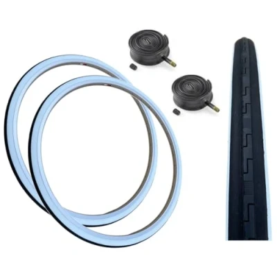 PAIR Baldy's 27 x 1 1/4 WHITE WALL Vintage Traditional Racing Bike Slick Road Tyres & Schrader Valve Tubes