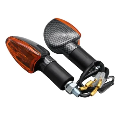 Pair: The indicators come as a pair, providing a complete set for both the left and right sides of your motorcycle. Long Stem Design: The long stem design offers a distinctive and elongated look, contributing to the overall appearance of your bike. Mini Spear Shape: The indicators feature a mini spear shape, adding a unique and stylish element to the front or rear of your motorcycle. Carbon Look Body: The carbon look body provides a sleek and modern appearance, giving your bike a touch of sophistication. Amber Lens: The amber lens enhances visibility and complies with safety regulations. It ensures that the indicators are easily noticeable by other road users.