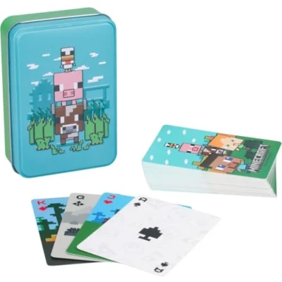 Step into a pixelated world with these Minecraft animals playing cards, featuring your favorite blockman creatures for a unique game night experience. Comes with a durable storage tin, keeping your deck protected when not in use. This set includes 52 cards and 2 jokers, perfect for all your favorite card games with a fun Minecraft twist. Ideal present for Minecraft enthusiasts, these set brings a blocky spin to any card game, making them a great addition to your playing card collection. These playing cards are officially licensed by Minecraft, ensuring high quality and authenticity for all fans of the game. Paladone we create official licensed products for popular brands across gaming and entertainment for all ages. Designed in the UK since 1994., Manufacturer: Paladone