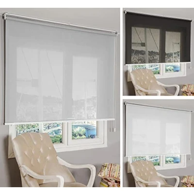 Size Width : 55cm (21.7") (please note that the width of the fabric will be 4cm narrower) Length/Drop: 200cm (78") Colour: Pale Grey Material: 30% polyester, 70% PVC 420gr/m2. Opennes factor 5% Installation: Right side pull mountable. The blind will come fully assembled and can be installed inside or outside recess on the wall or ceiling, all you need to do is fit the 2 blind holders using the screws and wall plugs provided and simply clip the blind into the holders Produced in Turkey