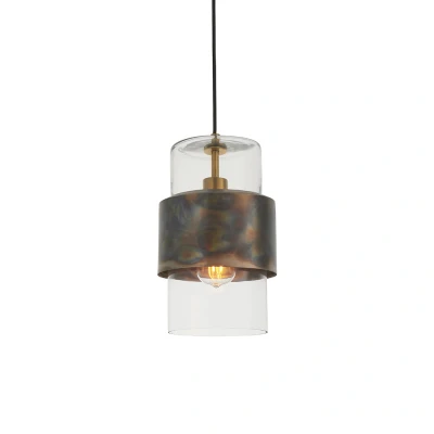 Palermo Pendant Ceiling Light Bronze Patina Plate & Clear Glass
