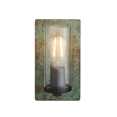 Palermo Wall Lamp Verdigris Bronze Plate, Clear Glass