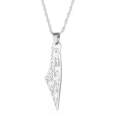 Palestine Flag Map Pendant Necklaces Men Women Hollow Flower Pattern Charm Ethnic Hip Hop Countries Neckwear Choker,Jewelry Gifts Clavicle Chain Sweater Chain,White,Long:50Cm