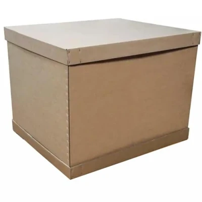 Strong, spacious, easy to use, and sized to fit standard pallets Available in a wide range of sizes, supplied from stock · Made from quad board wall cardboard, consisting of a base, lid, and sleeve Easy to assemble: place the product on the base, slide the sleeve over, and place the lid on top, then secure with staples and strapping Convenient to pack away for reuse after initial use