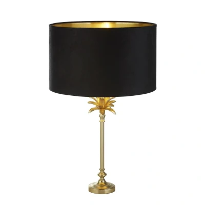 Palm Table Lamp Satin Brass, Black Velvet Shade