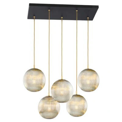 Paloma Cluster Pendant Ceiling 5 Light Grey Lister (Fluted), Black