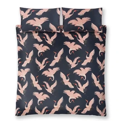 Paloma Home Oriental Birds Super King Duvet Cover Set Navy