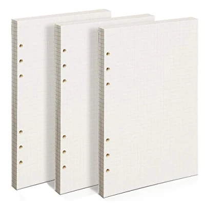 PALUDO 3 Pack A5 Squared Paper Refill 135 Sheets/270 Pages Insert Thick Refillable Paper, 6 Hole Loose Leaf Punched Pad