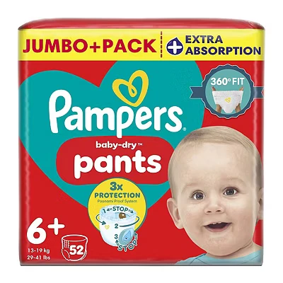 Boots48 Advantage card points. Pampers Baby-Dry Nappy Pants Size 6+, 52 Nappies, 14kg-19kg, Jumbo+ Pack FREE Delivery on orders over 45 GBP.