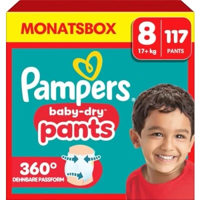 Pampers Baby Dry Pants Size 8, 117 Nappies, 17kg+, 360 Fit Helps Prevent Leaks