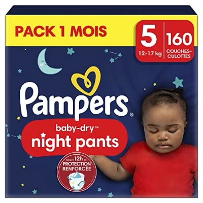 Pampers Night Pants, Size 5, 160 Nappies, 12 17 kg, 360 Support Against Leaks with Super Absorbent Core for Reinforced Protection All Night, Pack 1 Month