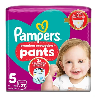 Boots15 Advantage card points. Pampers Premium Protection Nappy Pants Size 5, 27 Nappies, 11kg-17kg, Essential Pack FREE Delivery on orders over 45 GBP.