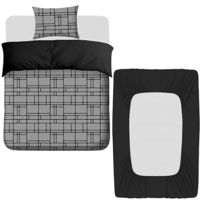 Pamposh 3 Pcs Single Duvet Cover Set with Matching Black Fitted Sheet 40 cm Extra Deep Pocket UltraSoft Breathable Premium Microfibre Reversible Quilt Bedding For All Seasons