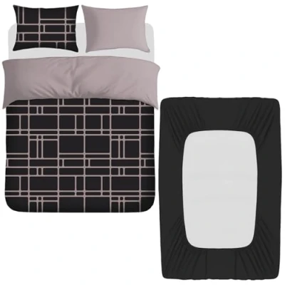 Pamposh 4 Pcs Double Duvet Set with Matching Black Fitted Sheet 40 cm Extra Deep Pocket UltraSoft Breathable Premium Microfibre Reversible Quilt Cover Bedding For All Seasons